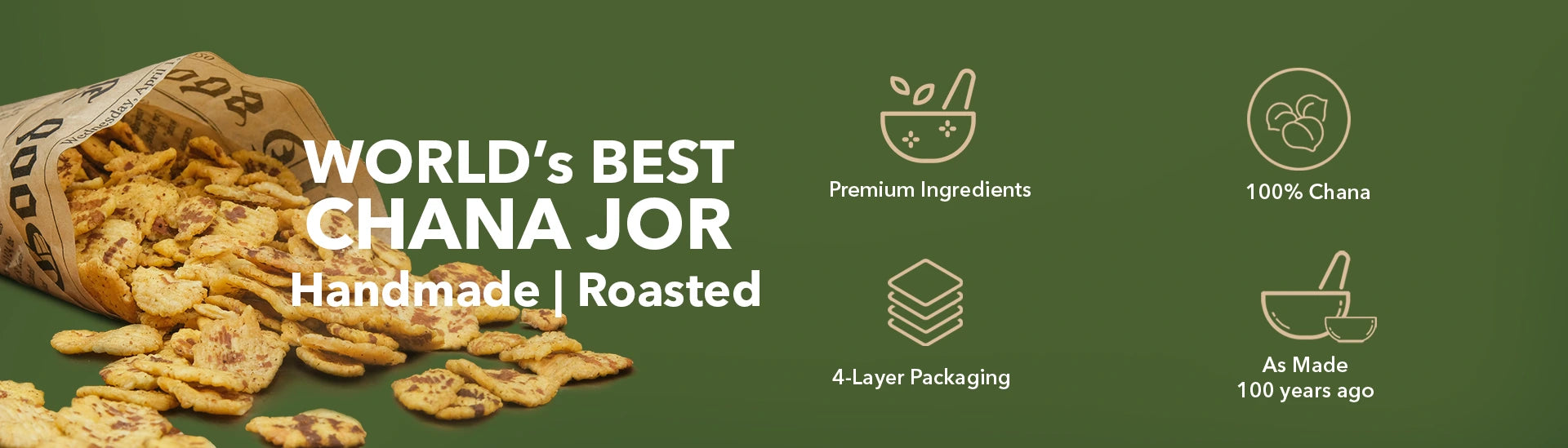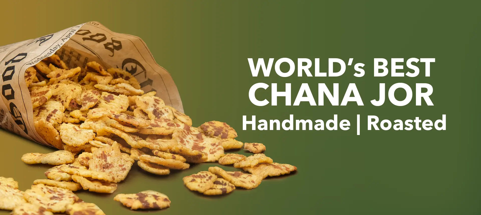 Discover a variety of authentic Gujarati-inspired snacks like our chana jor garam and khakra collection, perfect for any time of the day.