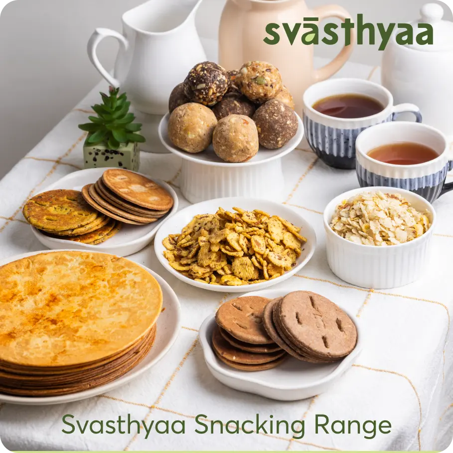 Svasthyaa is a trusted healthy snacks brand in India that offers a delightful selection of Gujarati snacks and other nutritious Indian snacks. Svasthyaa ensures that every bite is a delightful experience packed with authentic flavors and wholesome ingredients. Whether you're hosting a gathering and need Indian snacks for a party or are simply looking for the most healthy evening snacks in India, Svasthyaa has got you covered.