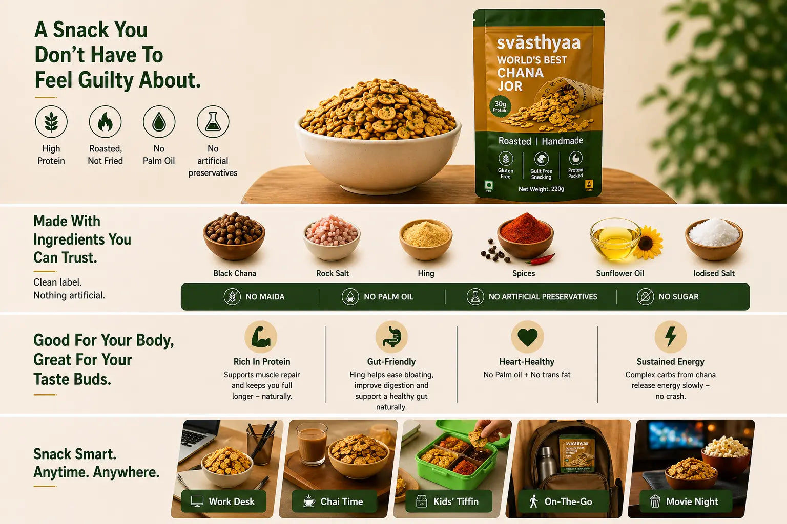 Perfectly Roasted: Enjoy the satisfying crunch of our khakhras, roasted to perfection for a healthier snack alternative.