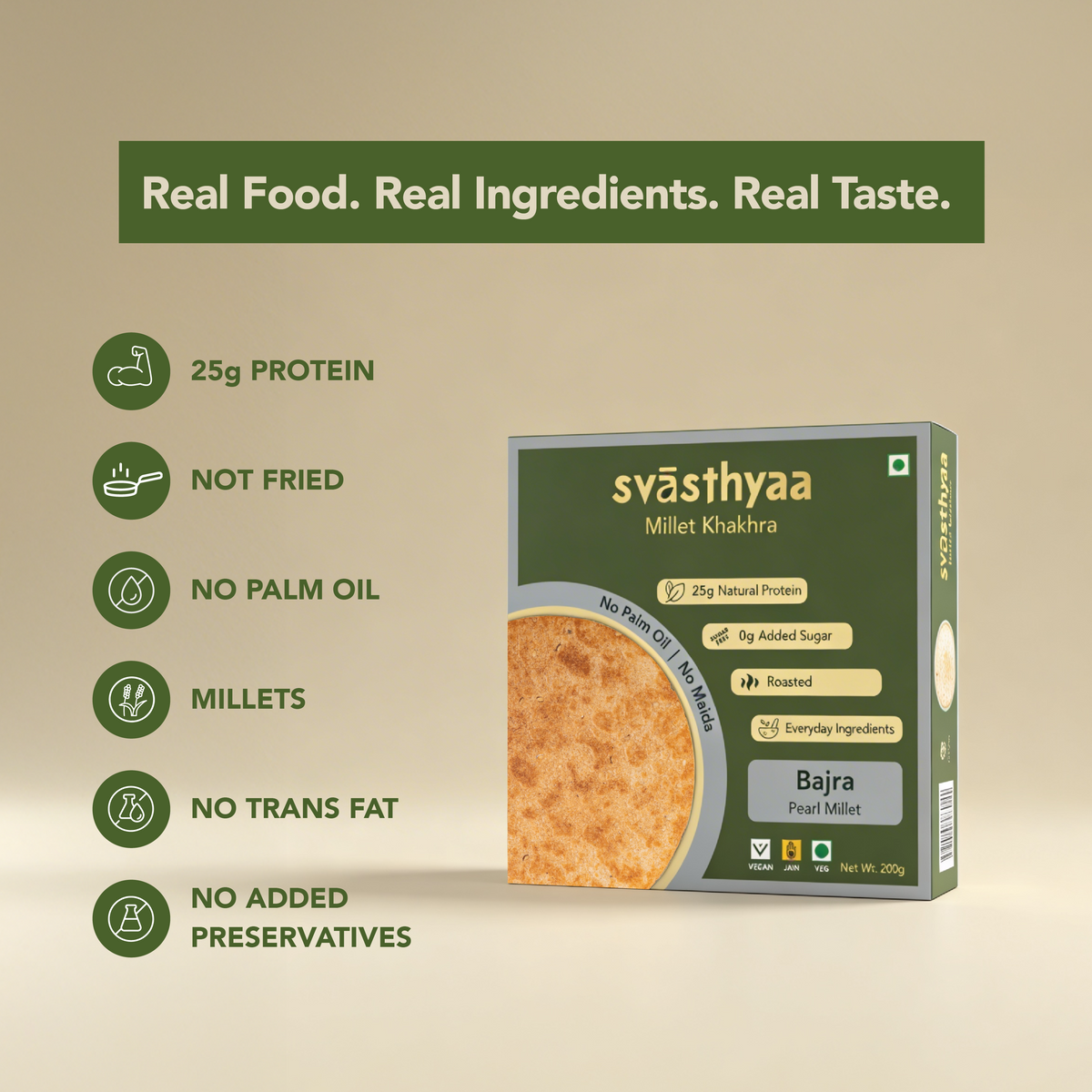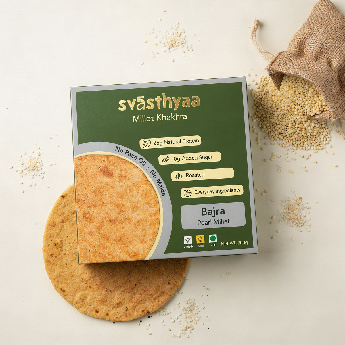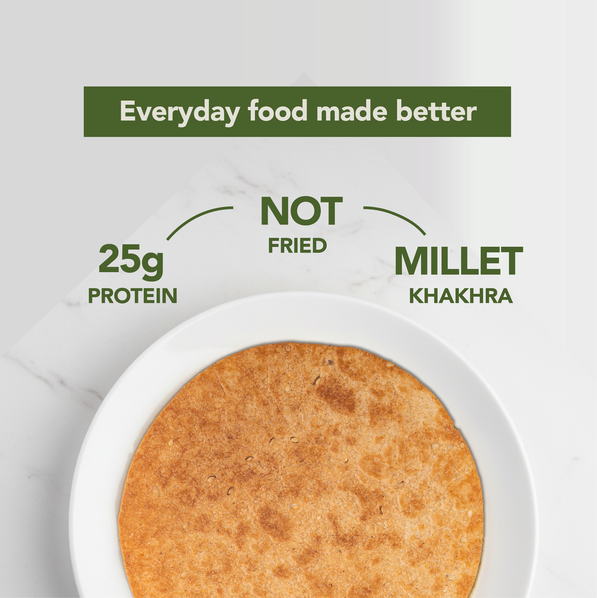 Rich in Ancient Grains: Our khakhras are made with a hearty blend of bajra and khapli wheat, grains celebrated for their nutritional profiles and sustainable farming attributes.