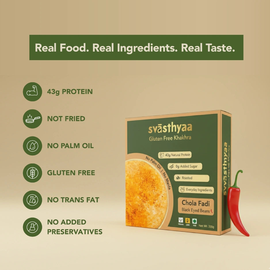 Perfect as an evening snack or a quick bite on busy days, our Chola Fadi khakhra pairs wonderfully with your favorite chutneys or dips, or can be savored just as it comes. Satisfy your cravings with something crunchy, flavorful, and inherently good for you!