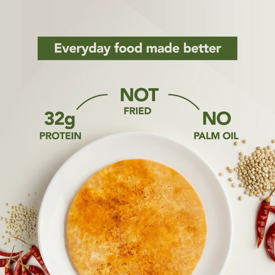 Legume-Powered: Combining three nutritious dals, our khakhra is rich in protein and fiber, supporting your dietary goals with every crunchy bite.