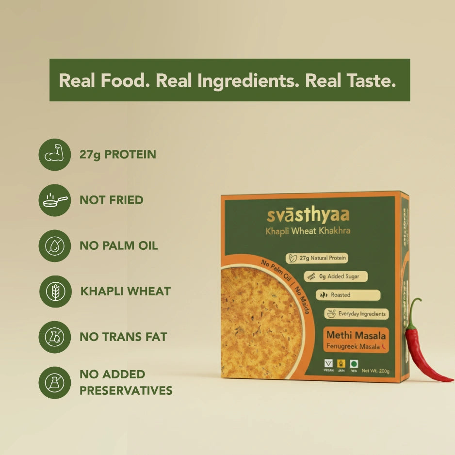 Pure and Simple: Free from palm oil and refined flours (maida), our khakhra promotes a pure, simple approach to snacking.