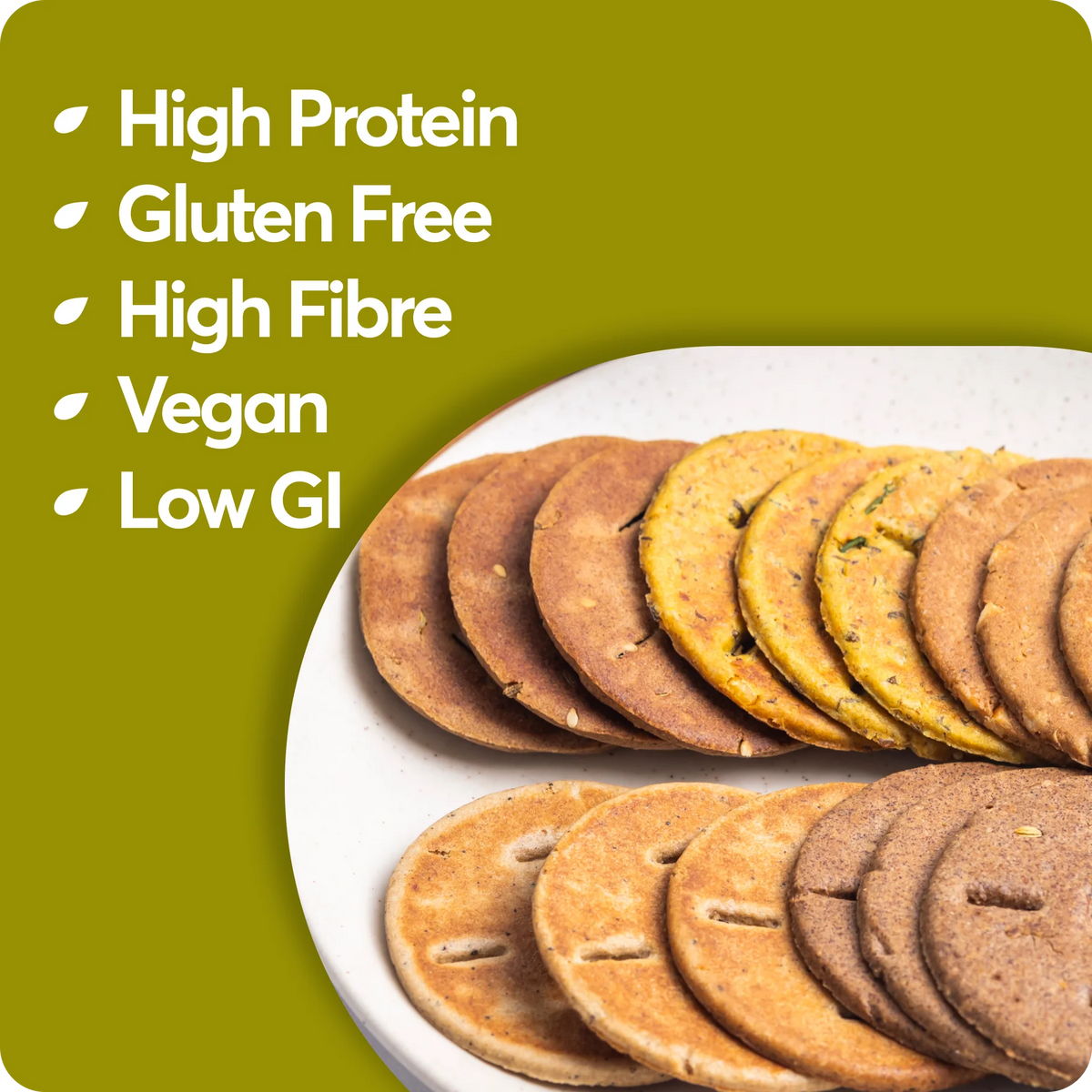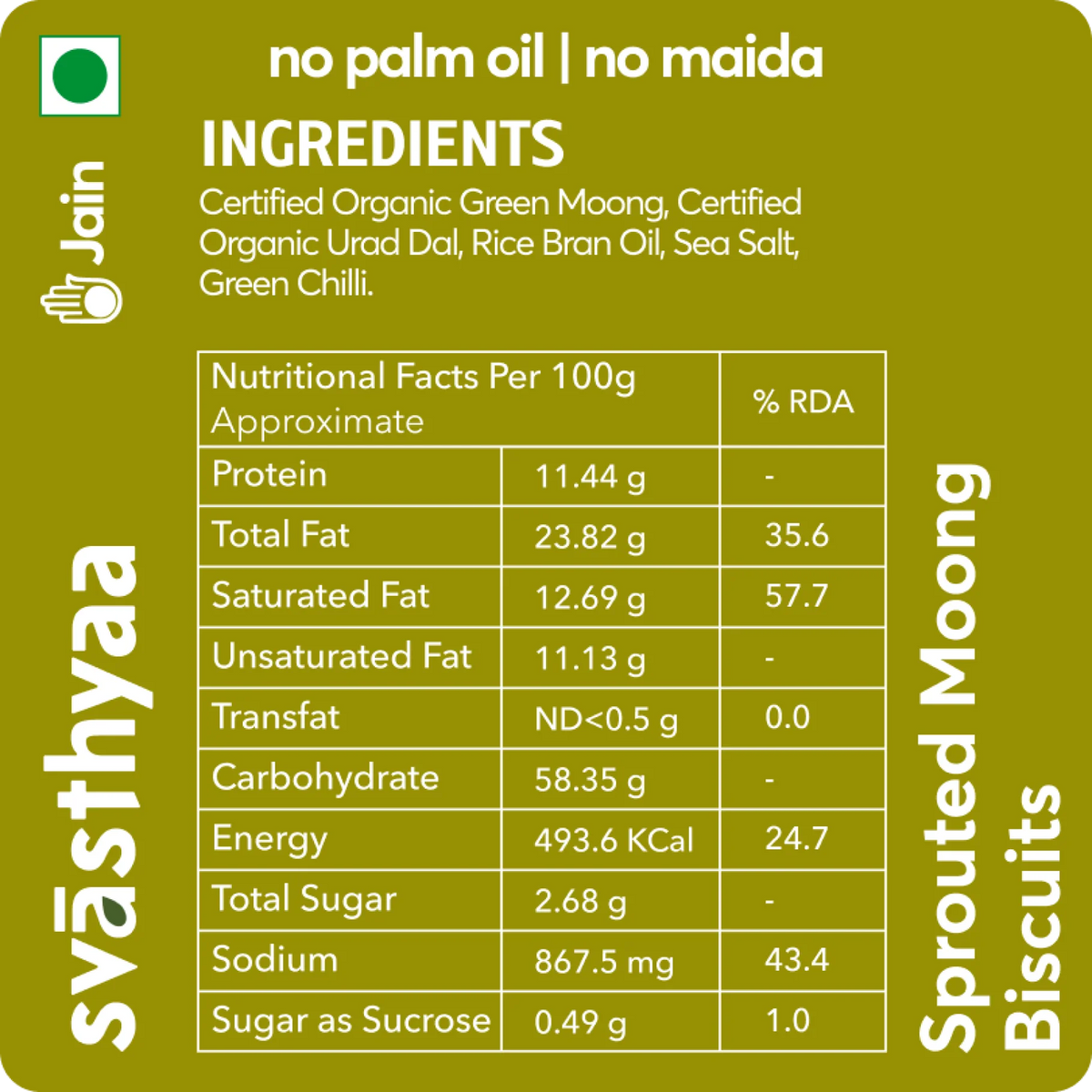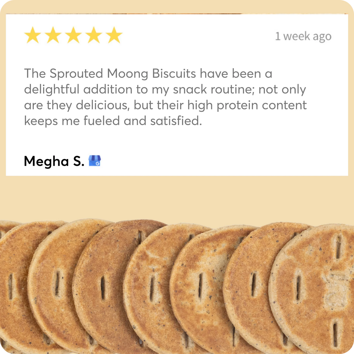 Rediscover the joy of snacking with our Sprouted Moong Biscuit! These unique "unbiscuits," crafted from sprouted green moong beans, offer a gluten-free, protein-rich alternative to traditional biscuits. Perfectly roasted to achieve a delightful crunch, our biscuits are made without maida or palm oil, aligning with your health and wellness goals.